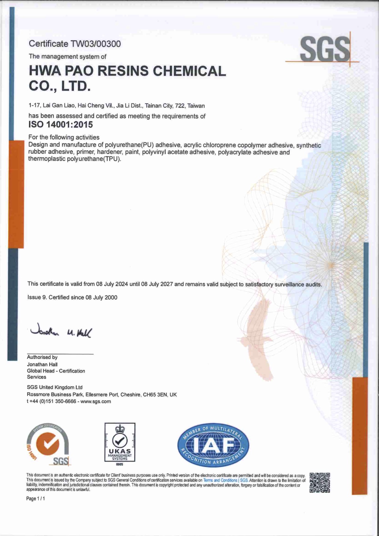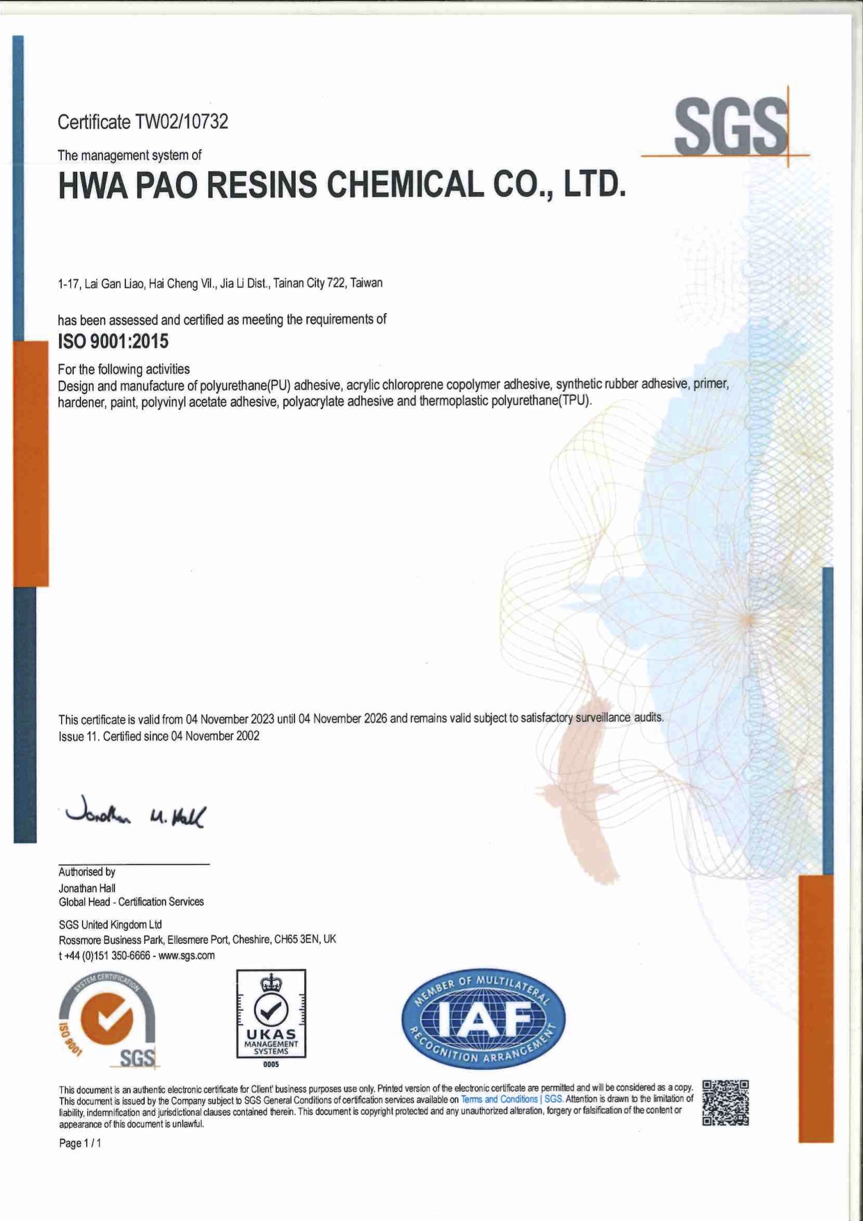 華寶為提高產品品質,於1997年導入並且通過ISO-9001國際品質認證,進行品質確保程序。生產活動皆經過本系統之各項審查,在嚴格及專業化的品質管理下,所有產品皆符合標準並贏得客戶的滿意與信賴。